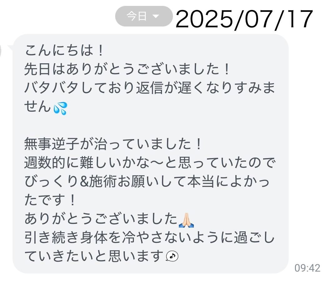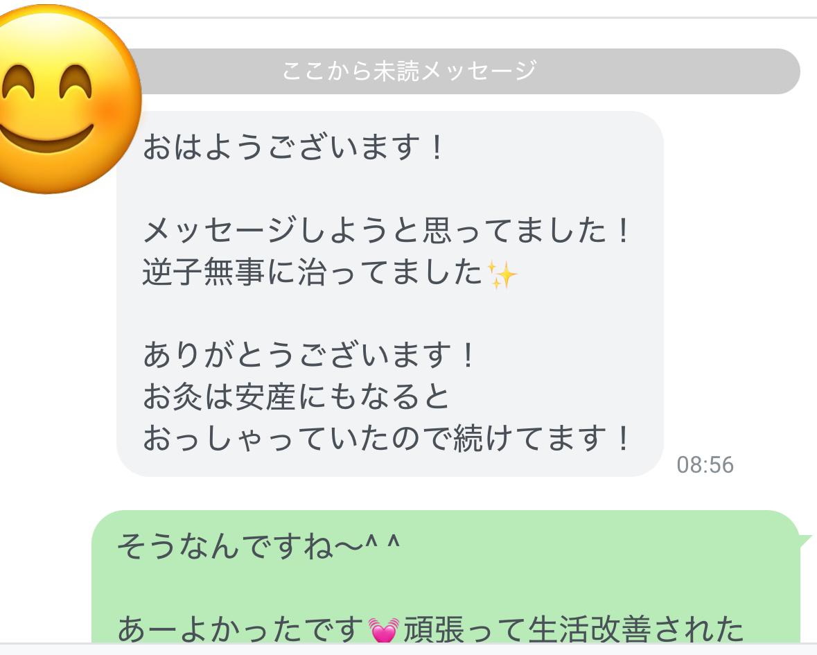 逆子施術後 戻りました!メッセージのご紹介